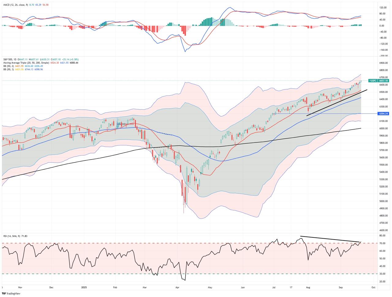 技术层面显示出明显的FOMO追涨迹象,标普500指数持续创历史新高,较50日均线高出两个标准差,这种极端偏离通常预示着短期调整风险。